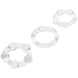 Die Penisringe sind flexibel und dehnbar, so dass sie für die meisten Grössen passen. Die weichen Beads um die Ringe und das transparente Material machen die Ringe besonders aufregend und anregend.