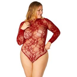 NORTIE Riga Red Lace Crotchless Bodystocking Plus Size - 28950