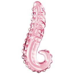 Der rosafarbene Glasdildo Icicles No. 24 hat auf der einen Seite stimulierende Noppen und auf der anderen Seite Rippen, die aussehen wie Venen, die beim Einführen des Dildos stimulieren.