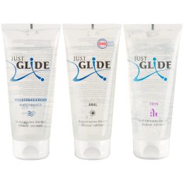 Das Just Glide Set besteht aus drei Gleitmitteln auf Wasserbasis mit extra langanhaltender Gleitfähigkeit, damit dein erotisches Vergnügen so feucht und lebensecht wie möglich wird.