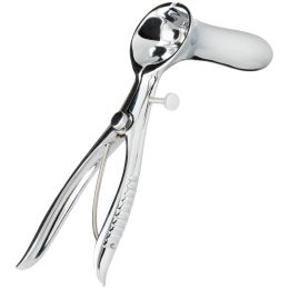 Es kann bis zu 8 cm tief eingeführt und bis zu 4,5 cm weit geöffnet werden. Du kannst es dann durch Anziehen der Schraube offen halten, sodass der Arzt die Hände für eine Inspektion frei hat oder andere Werkzeuge einsetzen kann.