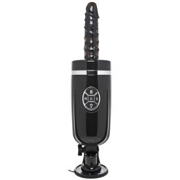 Für ein realistisches Erlebnis wird ein schwarzer 15-cm-Dildo mit Eichel und Venen daran befestigt, und die Maschine kann sowohl anal als auch vaginal genossen werden.