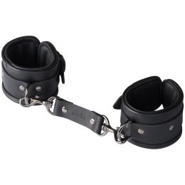 Schmücke deine Handgelenke mit den weich gepolsterten Manschetten und verwende die Schnallenverschlüsse, um die Passform an deine Grösse anzupassen. Der mitgelieferte Riemen verbindet die Hände eng miteinander, kann aber an- und abgenommen werden, damit du deinen Partner ebenfalls an einem Möbelstück fixieren kannst.