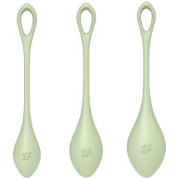 Mit dem Yoni Power 2 Kegelkugel-Set von Satisfyer bekommst du alles, was du brauchst, um deine Beckenbodenmuskulatur zu trainieren. Das Set enthält drei Bälle unterschiedlicher Grössen und Gewichte sowie ein ovales Design mit Rillenstruktur für zusätzliche Stimulation.