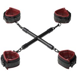 Die verstellbaren schwarz-roten Manschetten stellen den Träger mit Schnallenverschlüssen sicher und die drehbaren Schnappverschluss-Verbinder helfen dir dabei, jede sexy Stellung zu ermöglichen.